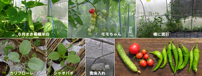今朝もファミリー農園へ水やりに行った。6月まきのキュウリ(相模半白)がなった。モモちゃんが旺盛に繁るのでひもを横誘引にした。おととい植えた苗は正常。その前にまいたチンゲンサイも大きくなっている。守るーむ内にも害虫がいるのでペットボトルにその都度入れている。(T)