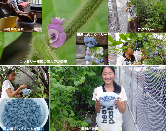 昨年の12月に仕込んだ味噌が出来上がったのでタッパに小分けした。娘宅で気に入られているので昨年からは量を倍増して20kgほど作っている。ファミリー農園の黒大豆(デカ黒)の花が咲き始めた。カメムシに注意が必要だ。孫たちが来た。車庫上で1〜2回収穫しその後とらずにいたフクベリーの2番なりがいっぱいなっていたので瀬那(小5)が雨上がりに収穫した。車庫上のは強い雨が降ってもブルームがとれない。いまだに原因はわからない。孫たちは夕方からUCとしまえんに映画を観に行った。2〜3日泊まるので賑やかだ。(T)