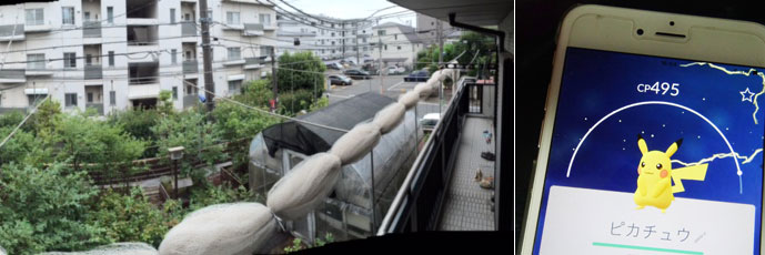 前線の影響で梅雨のような天気だった。台風も来ることだし、もう今年はブルーベリーの実がなっていないので車庫上の防鳥網をたたんだ。7月25日から楽しんでいるポケモンGoでやっとピカチュウが登場して喜んだ。(T)