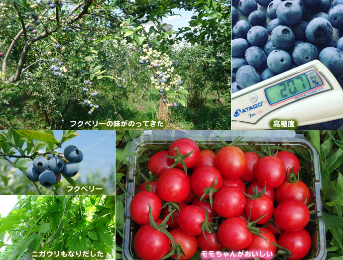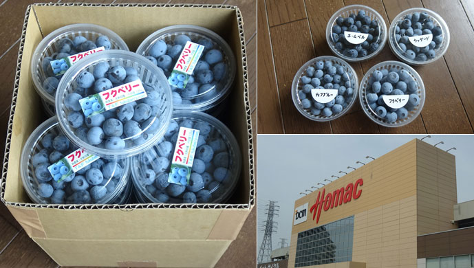 今日も猛暑の中、Homac白井店オーガニックスクールへ。きょうはちょうどブルーベリーの話だったので、時期的にラビットアイが取れていたのでサンプルとお土産用にはフクベリーのパックを持って行った。早めについて車中でお昼のNHKニュースを見ていると、埼玉県の美里町のブルーベリー摘みのカットが流れた。そこに映し出されたのはフクベリー。収穫品種についてティフブルーと大粒のフクベリーとアナウンスされたのは嬉しかった。NHKニュース動画(T)