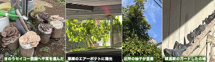 昨日の農園の帰りセイコー農園に寄り平茸の原木を運んだ。小春日和の陽光がエアーポテトのグリーカーテンにそそぐ。近所のゆずの木に実がいっぱいなっている。練馬に買い物に行った時、ガード下に鳩がいっぱい日向ぼっこしていた。 (T)