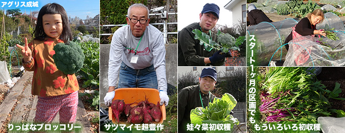 立ち栽培のサツマイモが豊作。ルッコラも取れている。里芋もよく太って豊作。ウエストガーデンでは恒例のイベント用大根がよく育っている。ニュービックリジャンボインゲン、冬ごのみホウレンソウを収穫した。間引けるほどによく育ったニンジンもある。
