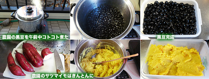 今日は昨日から仕込んでいた農園産の黒豆を午前中コトコトと煮た。つづいて午後は同じく農園産のサツマイモでいつものきんとんを作った。