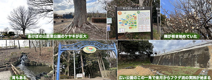 千葉県柏市のあけぼの山農業公園へ行った。面積18ha。あけぼの山公園と合わせると24haの広大な公園。入り口横のケヤキの木も巨大で根張りもすごかった。ちょうど梅が咲き始めていた。滝もある。この広い公園内の一角で来月からフクダ流野菜作りの実践が始まる。今日はその打ち合わせだった。 (T)