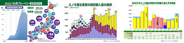 雨だったのでいつものブルーベリーの農水省の統計と財務省の統計データをもとに作図した。自然日記は解像度を落としているが、SNSには高解像度の図表をアップした。農水省のデータの最新は3年前のものだが、財務省のデータは昨年のもの。全国の栽培面積はほぼ横ばい。県別で東京が一位に変わりはない。生果実の輸入量はメキシコが64%も占めている。 (T)